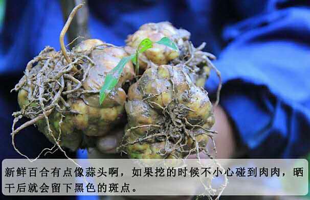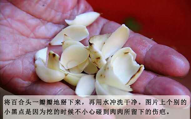 如果是用硫磺熏过的百合是白色的,颜色漂亮统一,碰伤的黑斑也熏没了。凑近闻有刺鼻的气味,那样的百合还是不吃为好。