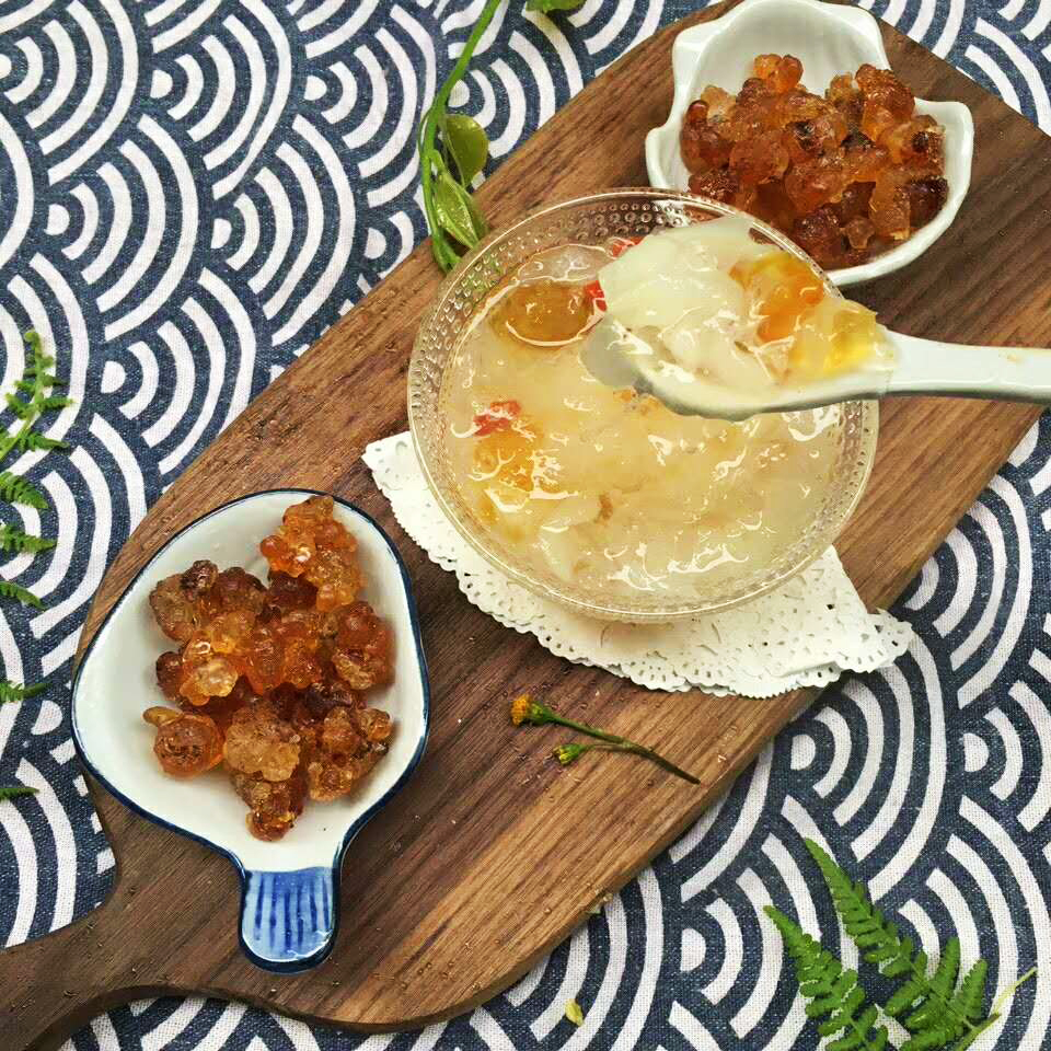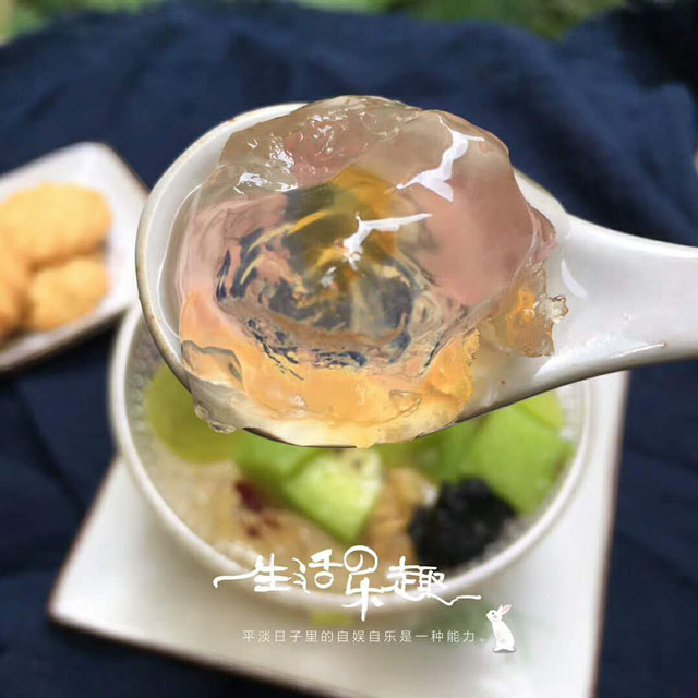 桃胶口感似果冻般爽滑,做法很多,可以炒,炖,凉拌,可荤可素。但最流行的做法,还是把桃胶做成甜品。因为它的美容功效,与银耳、莲子、皂角米搭配尤为合适。