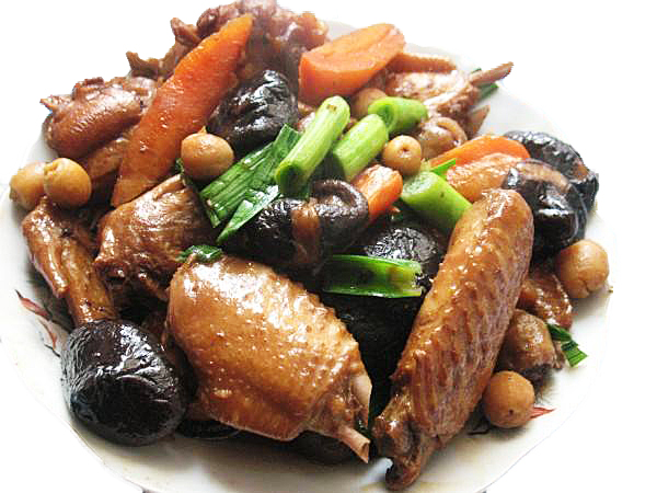 原料:鸡翅膀1对,菜心50克,桂圆肉20克,红葡萄酒、花生油、白糖、酱油、盐、湿淀粉、姜、葱、高汤各适量。