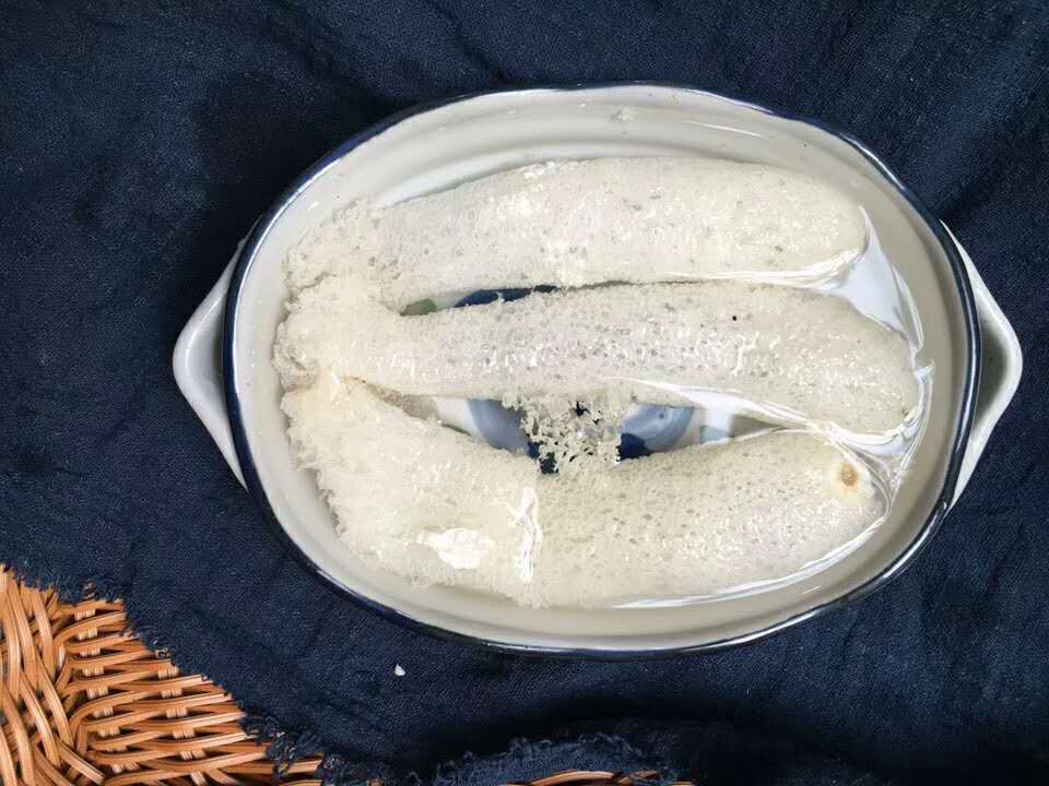 泡之前剪去竹荪封闭端的底部(怕有味道的可以把伞也去掉),泡在淡盐水里半小时以上,换一两次水。