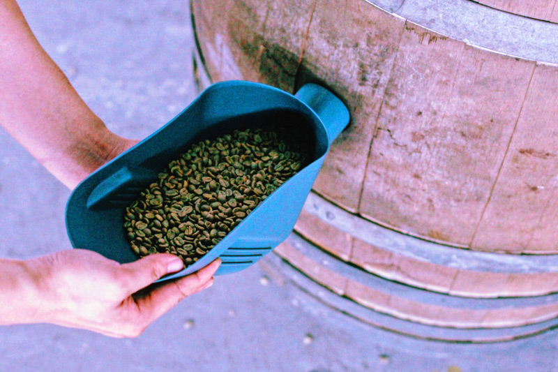 我们选用4年陈酿过后的西班牙雪莉桶,经过咖啡豆入桶储藏和精心照顾,转移一部分橡木桶中天使分享的酒香到咖啡豆中,打造出这款咖啡豆。