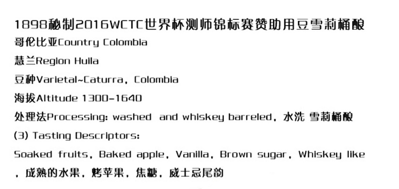 这款豆子也是2016上海WCE(世界咖啡竞赛)感官吧台用豆,得到了现场两位世界咖啡杯测冠军和所有饮用者的赞美。