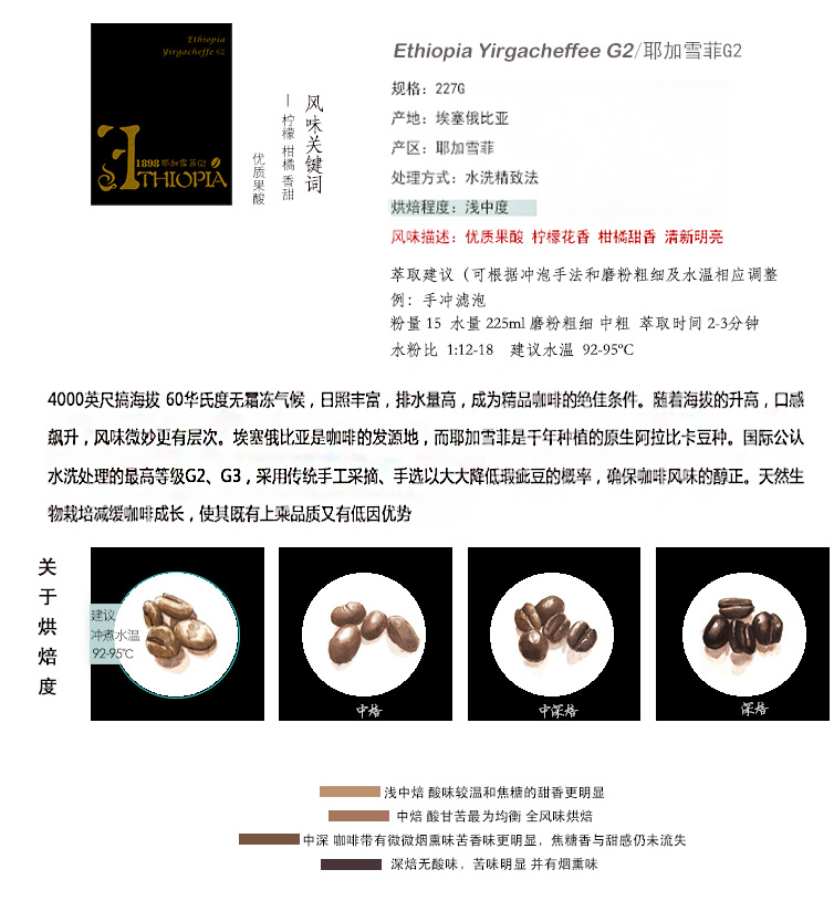 1898埃塞俄比亚西达摩狮子王水洗G1精品咖啡豆227克98元包邮