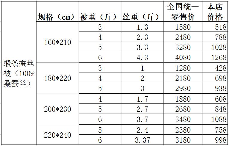 【蚕丝被规格价格】