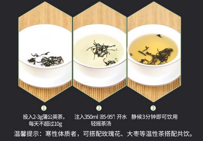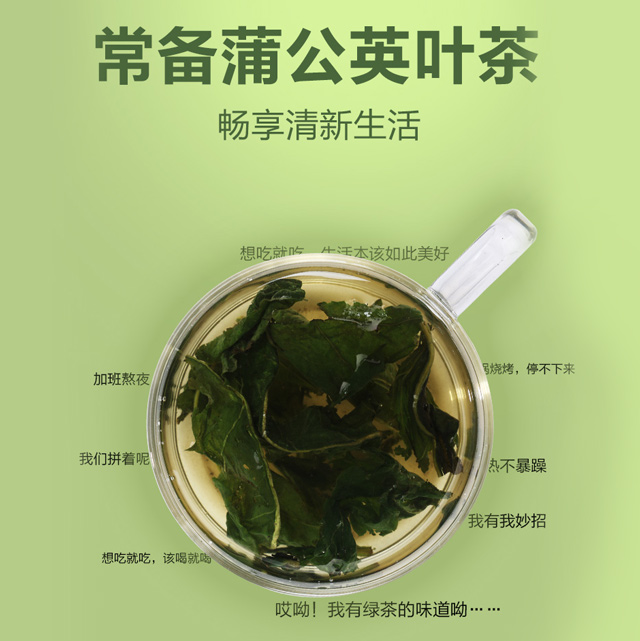 我们的蒲公英叶茶摘取自纯净无污染的长白山野生蒲公英,采用绿茶工艺,不加冰糖不加香精,手工炒制,清香回甘,唇齿留香。