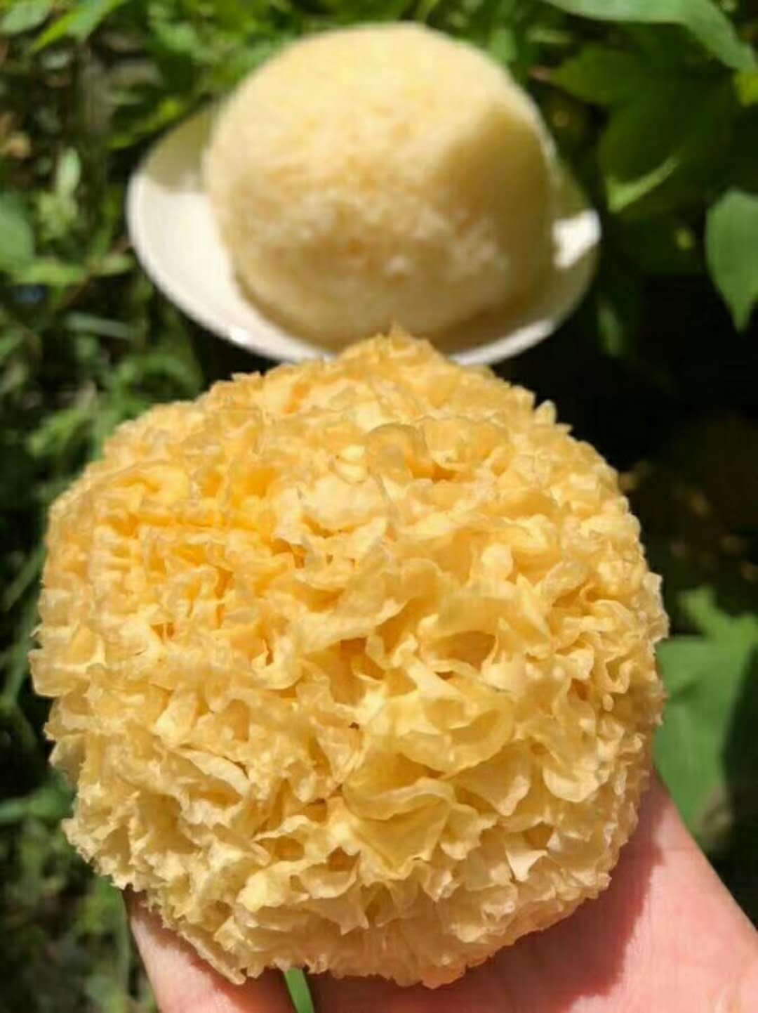 丑耳在培植过程中浇水较少,所以丑耳比普通银耳更小巧,花型紧凑,颜色呈金黄。涨发率比普通银耳低些,不会像银耳那样泡得非常大。