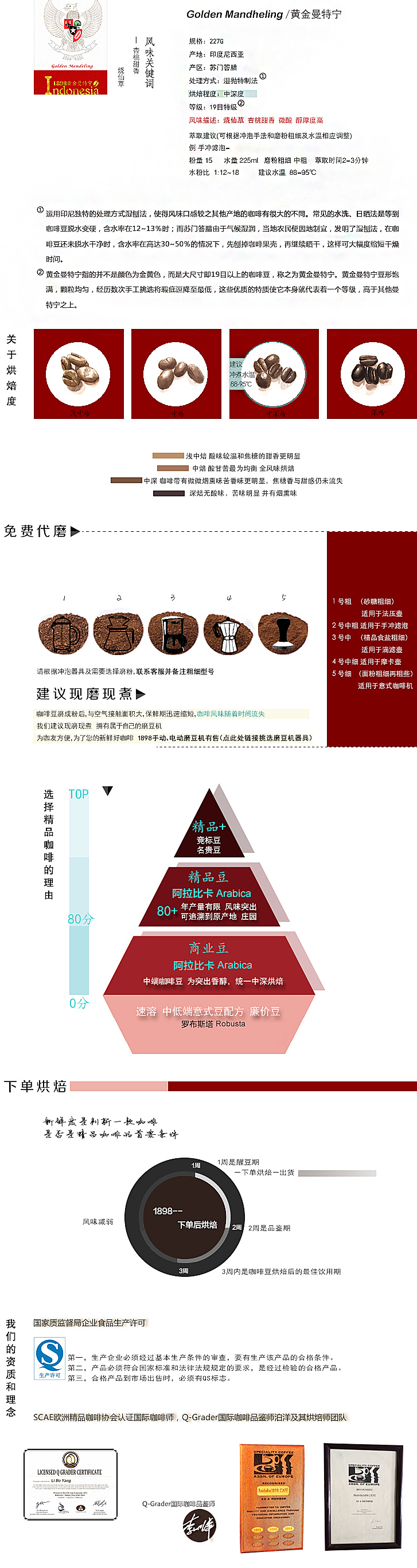 1898苏门答腊进口黄金曼特宁精品咖啡豆227克98元包邮(磨粉需备注)