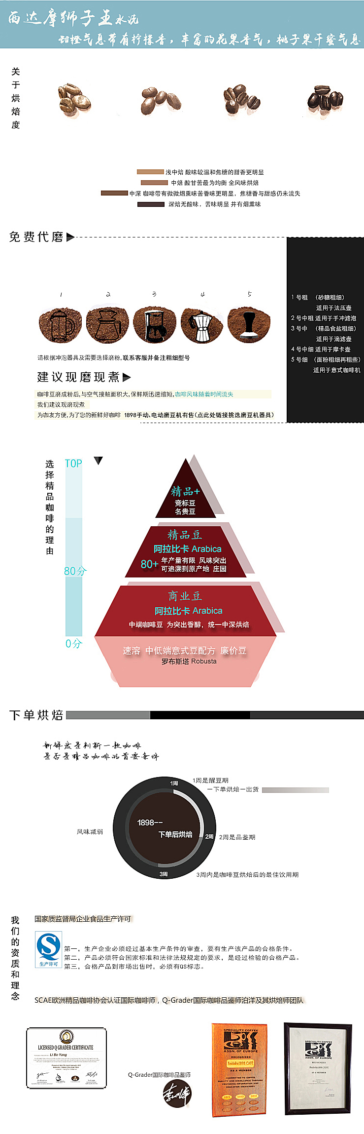 1898埃塞俄比亚西达摩狮子王水洗G1精品咖啡豆227克98元包邮(默认发豆,磨粉需备注)