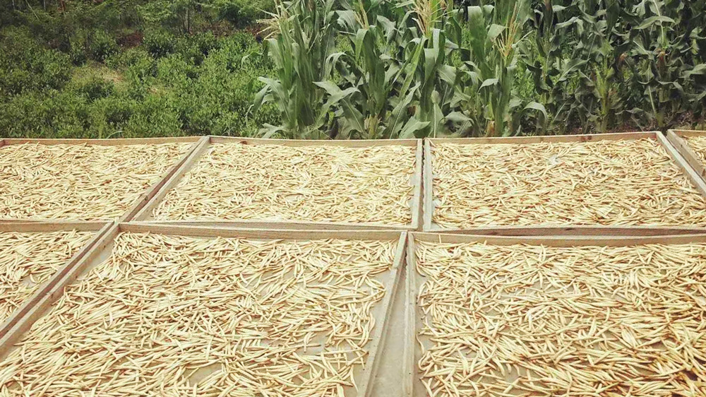 我们的黄花菜干来自浙江东南沿海海拔最高的大洋山上。摘取原生态种植的黄花菜未开放的花苞,放在蒸笼里蒸熟后,再晒干的。