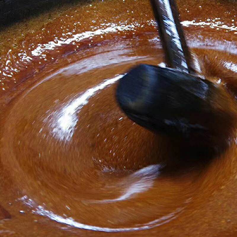 沿用古法,将收割下来的甘蔗经过切碎碾压,压出来的汁液,以小火熬煮5~6小时,不断搅拌让水份慢慢的蒸发掉,使糖的浓度逐渐增高,高浓度的糖浆在冷却后会凝固成为固体块状的粗糖,也就是红糖砖,这样的传统做法保持了甘蔗原本的营养。
