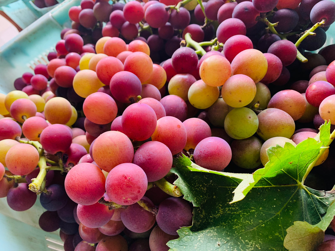 土壤营养富足,葡萄健壮,哪怕不人为疏果,益禾基地的一根藤上结了四五串(传统的只能留下1-2串),葡萄的大小也丝毫不受影响(别人家用了三次膨大剂的也没这么大)!