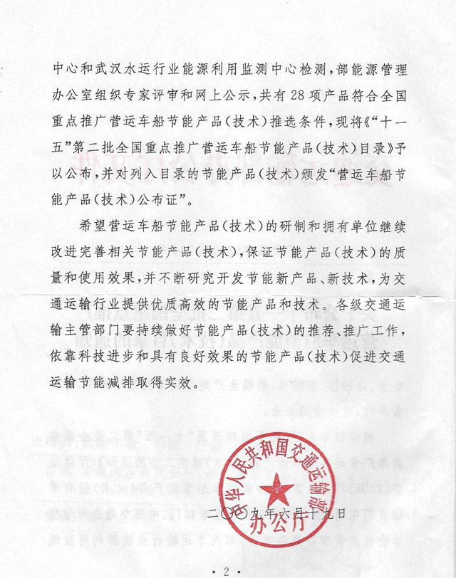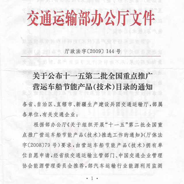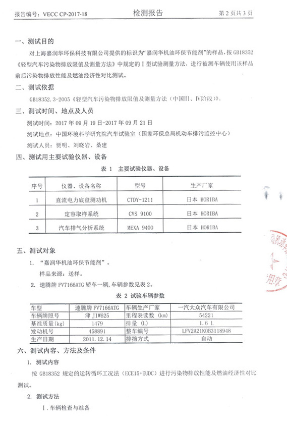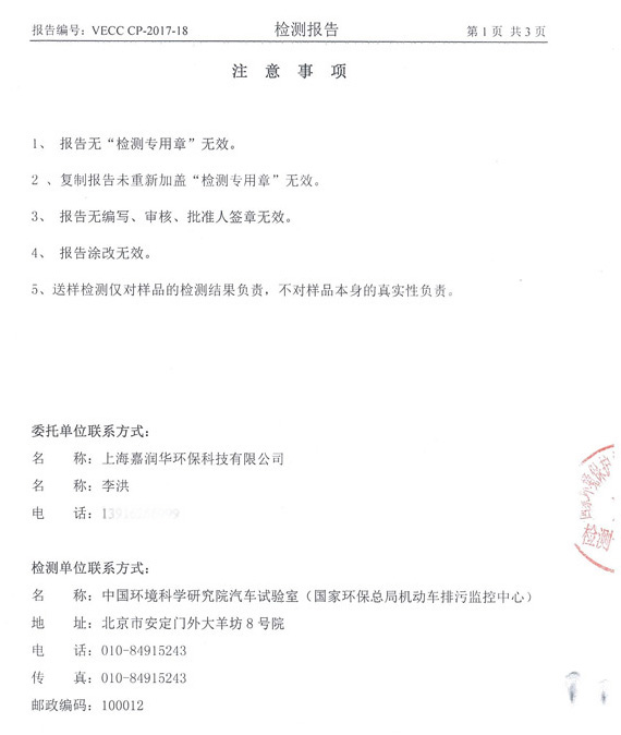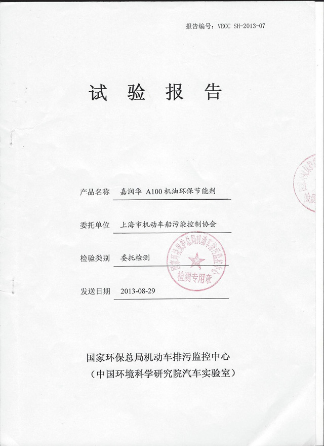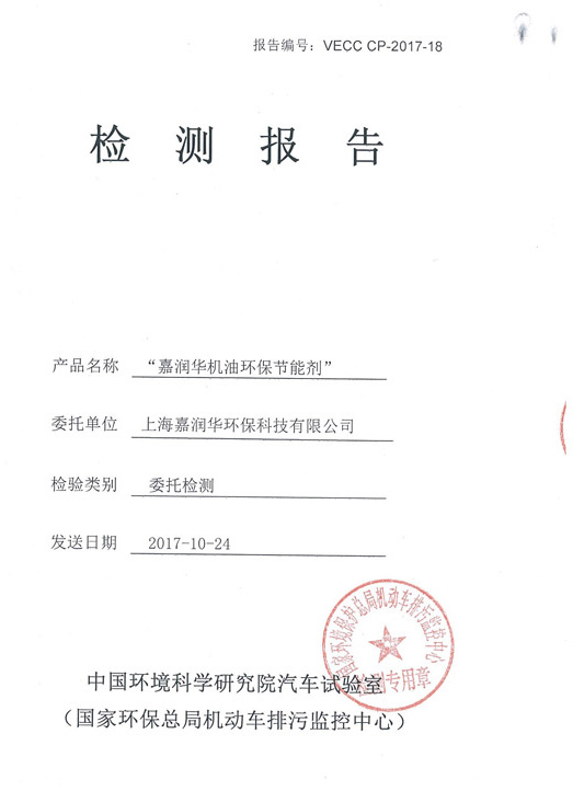 经交通运输部主持严格检测,并组织专家评审,我公司生产的嘉润华环保节能剂获得“十一五”营运车船全国重点推广节能产品证书。通过一汽奥迪、江铃汽车、海马汽车、吉利华普汽车、力帆汽车等汽车生产企业的检测验证。
