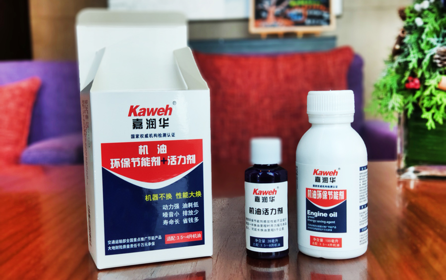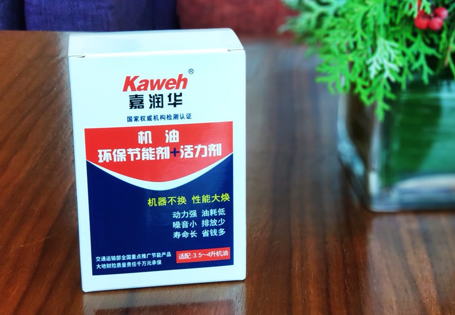 嘉润华机油环保节能剂能提高机油的高温高剪切粘度,同时提高燃点、闪点15-30°C。增强自润滑耐高温密封性能,提高气缸密封,促进燃烧热循环、燃油有序燃烧,并充分吸收,提高充气系数,显著节省燃油消耗,大幅降噪减排,延长催化转换器寿命和排放合格里程,保证车辆年检尾气达标。寒冷启动快,稳怠速,防熄火。在高温状态下,因热能已转化为动力,使机体温度降低,提高燃油适应性,降低爆震倾向,从而能满足涡轮增压或高压缩比发动机耐高温性能的要求,避免烧机油,防止爆缸、拉缸烧瓦、自燃等严重问题发生。增强机油抗乳化,抗水解,抗氧化性能,抗摩减摩,不结胶,无危害,延长换油里程,保护机器,减少维修、保养和使用费用。
