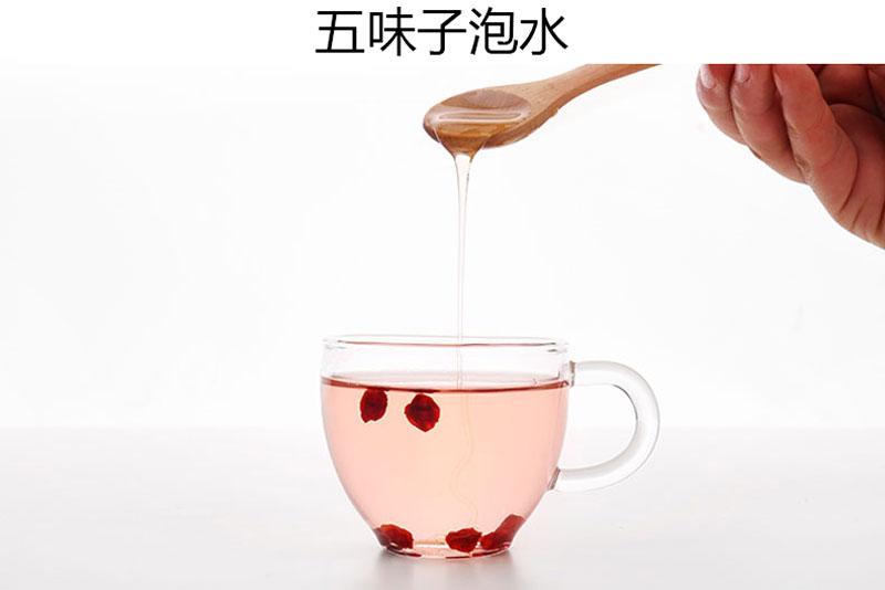 除了配伍中药,五味子也可以泡茶饮用,五味子泡水汤色淡红,口感微酸。可以加入蜂蜜,酸酸甜甜,具有补肾,清肝火的功效。