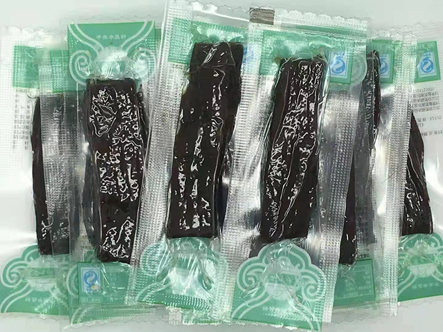 因为我们用的是内蒙通辽当地的牛肉,两斤多鲜牛肉才能制作1斤牛肉干,牛肉的价格摆在那里呢。你知道有些便宜的牛肉干里面有多少牛肉,有多少大豆蛋白呢?