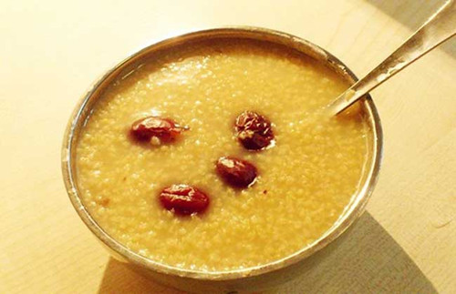 党参8克,红枣15克,小米180克。 将党参洗净,红枣洗净去核,小米洗净,用水浸泡片刻,备用。往锅中注入适量清水,大火烧开,倒入准备好的小米、党参、红枣,大火烧开后用小火煮30分钟,等小米粥变浓稠即可。