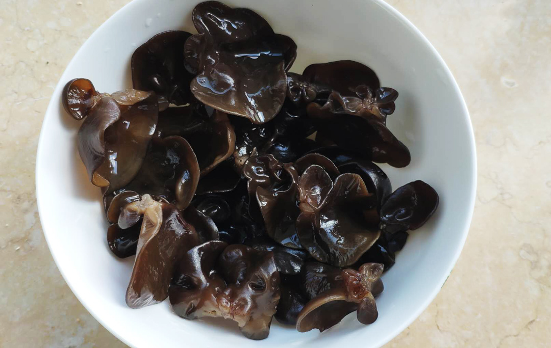 用手捏不碎,有韧性,同样重量比正常的黑木耳数量少,用舌舔,有甜、咸、涩、苦味,入水即下沉,用水泡发后肉质软烂,无弹性。