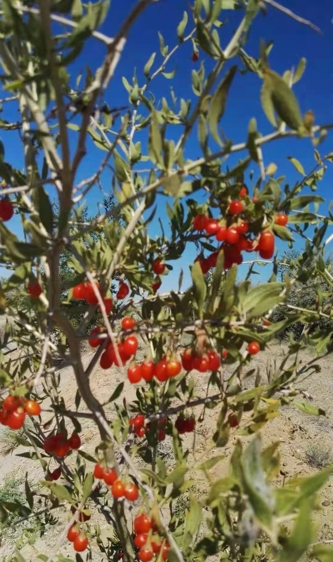 新疆戈壁野生红枸杞,生长在北纬43度左右,因地区纬度高,季节气候变化大,釆摘时间很短,所以数量不多,品质一流!