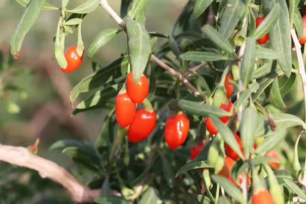 枸杞子甘杞、红耳坠,夏、秋两季果实呈红色时采收,热风烘干,除去果梗,或晾至皮皱后,晒干,除去果梗。枸杞子用于医药已有三千多年历史。