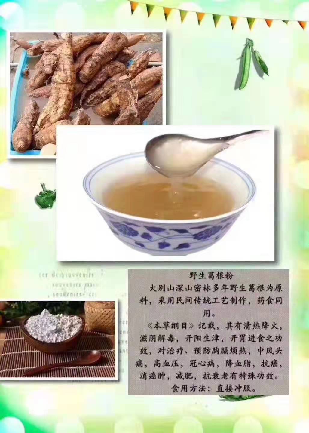 这是来自弟兄的家乡,安徽大别山的特产----多年生野葛根粉,真正的绿色天然食品。这里远离城市,没有工业,崇山峻岭,森林茂密,空气清新,水源丰富清澈,土壤无污染。每一棵葛根都需要翻山越岭,从深山挖掘出来,凝聚着家人辛勤的汗水,每一碗葛根粉满载着弟兄一家美好的情谊!