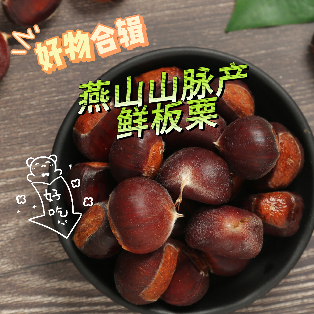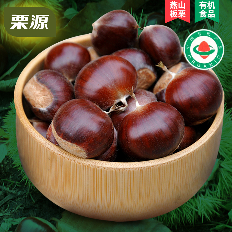 新鲜上市的有机鲜板栗产自河北北部北京以东的燕山山区又称为燕山板栗:这里生长出来的板栗,无任何添加剂,在山区里自然成熟掉落,人工精挑细选,剥开会有股浓郁的板栗香甜的味道,颗粒非常饱满,而且香甜软糯,皮也很薄,表皮紫红光亮,果肉金黄,品种质量非常的好。