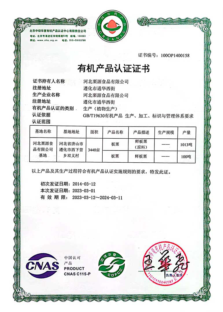 鲜板栗来自北京以东的燕山山脉栗源有机种植基地,燕山山脉东西走向,山地缓坡、微酸性土壤,风沙土层较厚,结构疏松,通透性好,土壤PH值6.5-7.0之间,富含矿物质金、锌、铁、硒、钙等,有机成分含量丰富。雨水适中,日照充足,温度适宜。独特的地理环境和气候培育了燕山板栗独特品质。