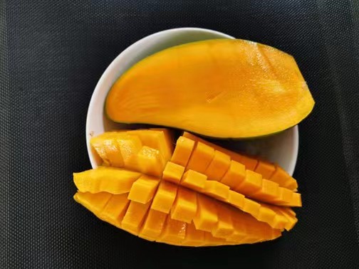 大青芒硬果时可削皮蘸辣椒生吃哦。椰香芒成熟后口感有椰子的香味。