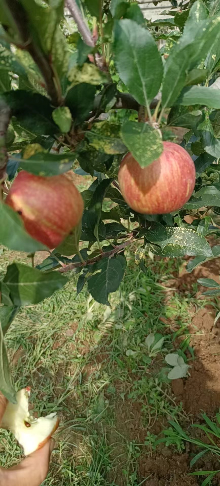 九年野放管理,每年割草,喷酵素,不施肥,不打药,不用除草剂,与杂草和谐共生,不套袋,为的是更多吸收天地自然能量!自然变红,不分大小,通果。