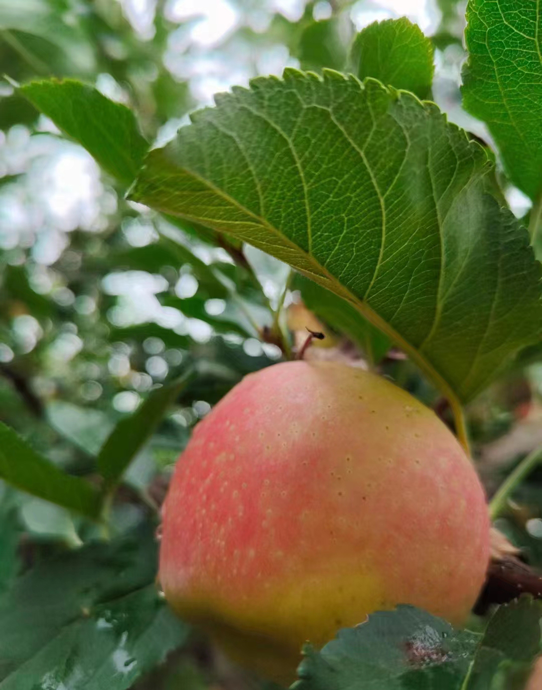刚摘下来的嘎啦果,不像市面用药那么红,貌不惊人,个头小,口感却脆爽、甜得沁人心脾!咔嚓一声,伴随着果肉的碎裂汁水随即涌出!完全天然的生长过程积聚了阳光雨露强大的能量!
