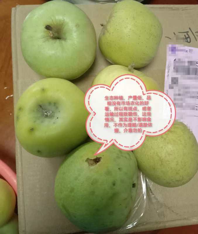 1、青苹果是生态种植、多年野放不套袋,所以有果斑,这种不是里面坏,去皮后可以吃,介意勿拍。