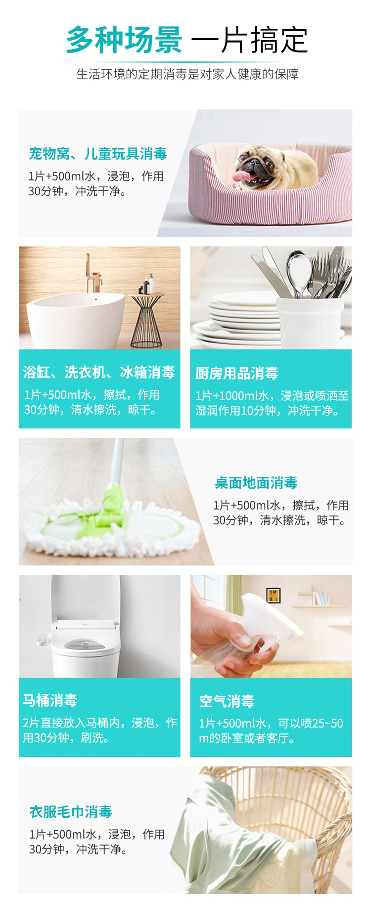 有效杀菌、安全无毒、净化水质、瓜果蔬菜消毒、环境消毒,使用简单、快速方便、用途广泛。