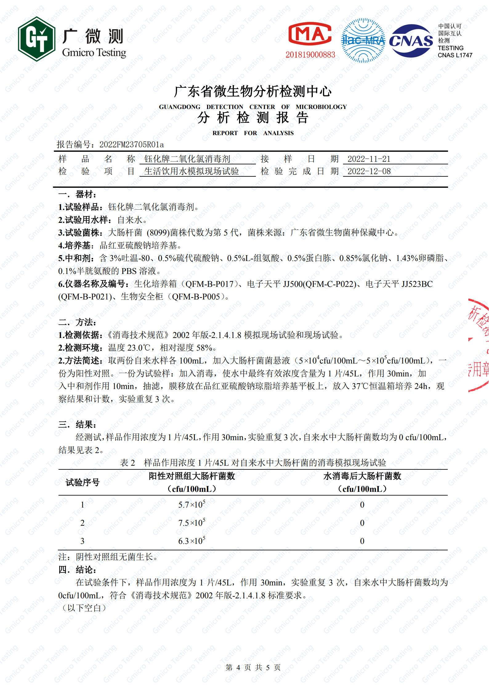 一片消毒片溶解在160-400kg水里面,浓度是0.2-0.5mg二氧化氯/升水,也可以说是0.2-0.5ppm,0.2-0.5mg二氧化氯/升水.是国家规定的饮用水的标准浓度,在这个范围内都可以消毒杀菌。