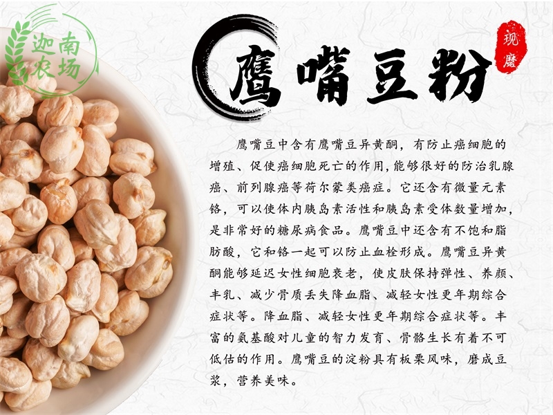 鹰嘴豆属于豆科鹰嘴豆属植物,是大自然赐予人类的珍品,在世界上享有“黄金豆”的美称,早在七、八十年代,欧洲就已将其作为日常饮食,并列为糖尿病病人的主要补充食物。其含有较多豆异黄酮、叶酸、膳食纤维和粗纤维,具有改善更年期、延缓衰老、促进发育、润肠通便的作用。