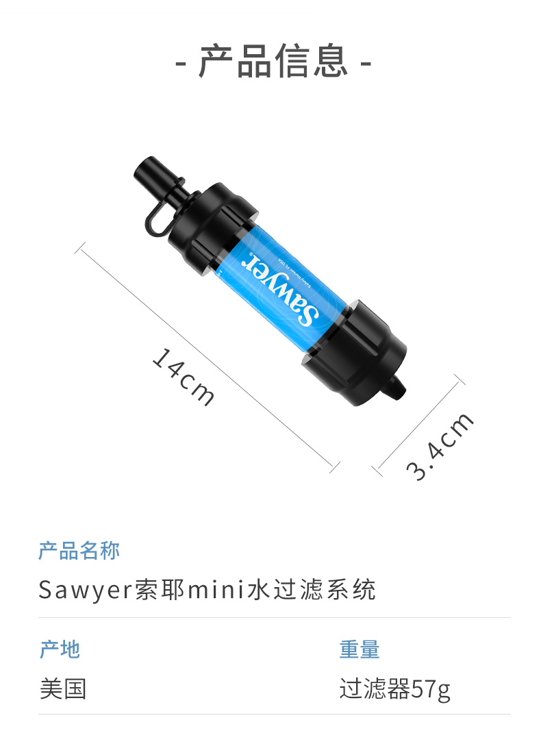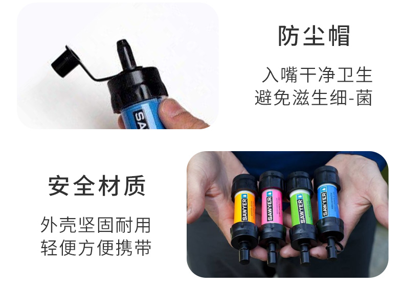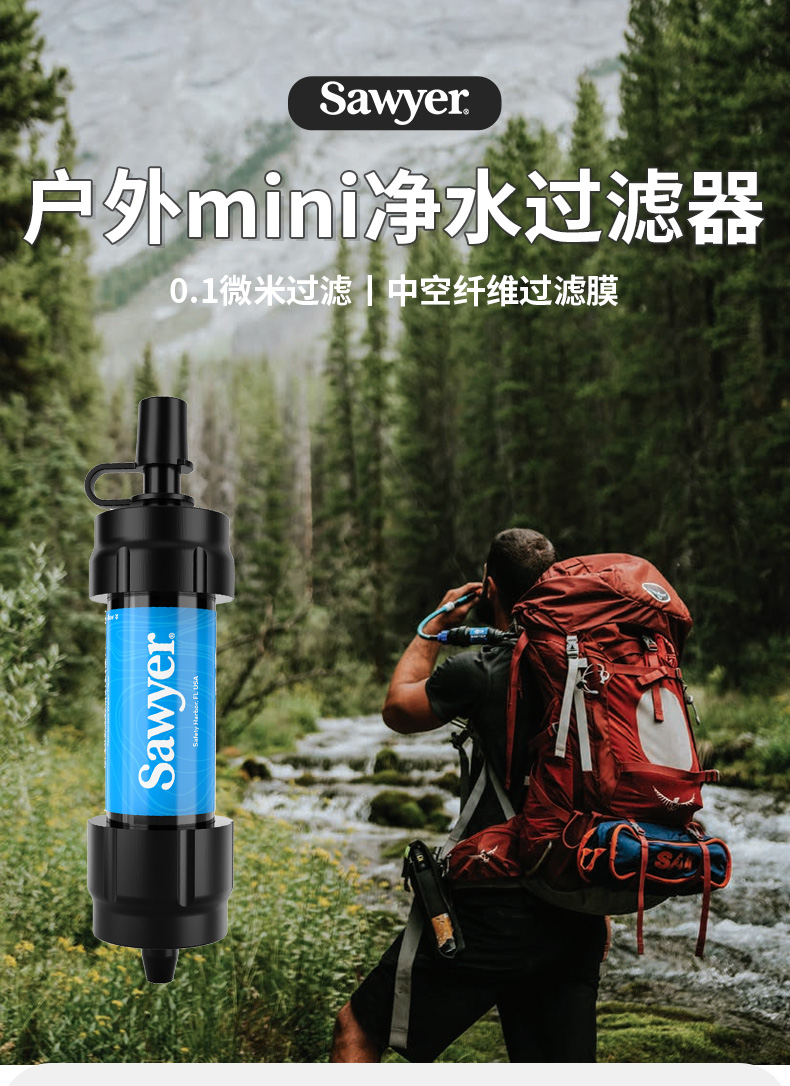 美国Sawyer索耶户外便携式野营徒步抗震停水应急直饮水小过滤器每套199元起包邮
