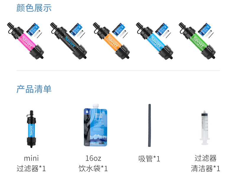 Sawyer索耶迷你净水过滤器(MINI)(SP128有蓝、粉、黑、橘、迷彩色,随机发货):每套199元