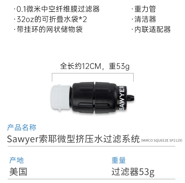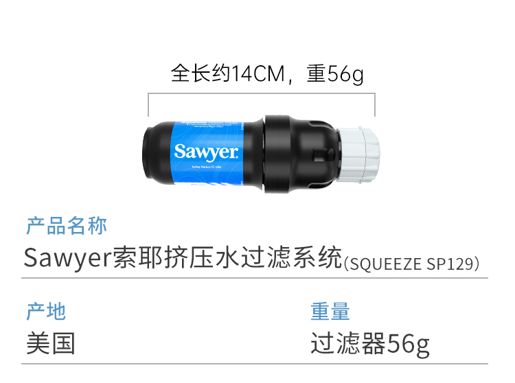 Sawyer索耶挤压水过滤系统(SQUEEZE SP129):每套339元