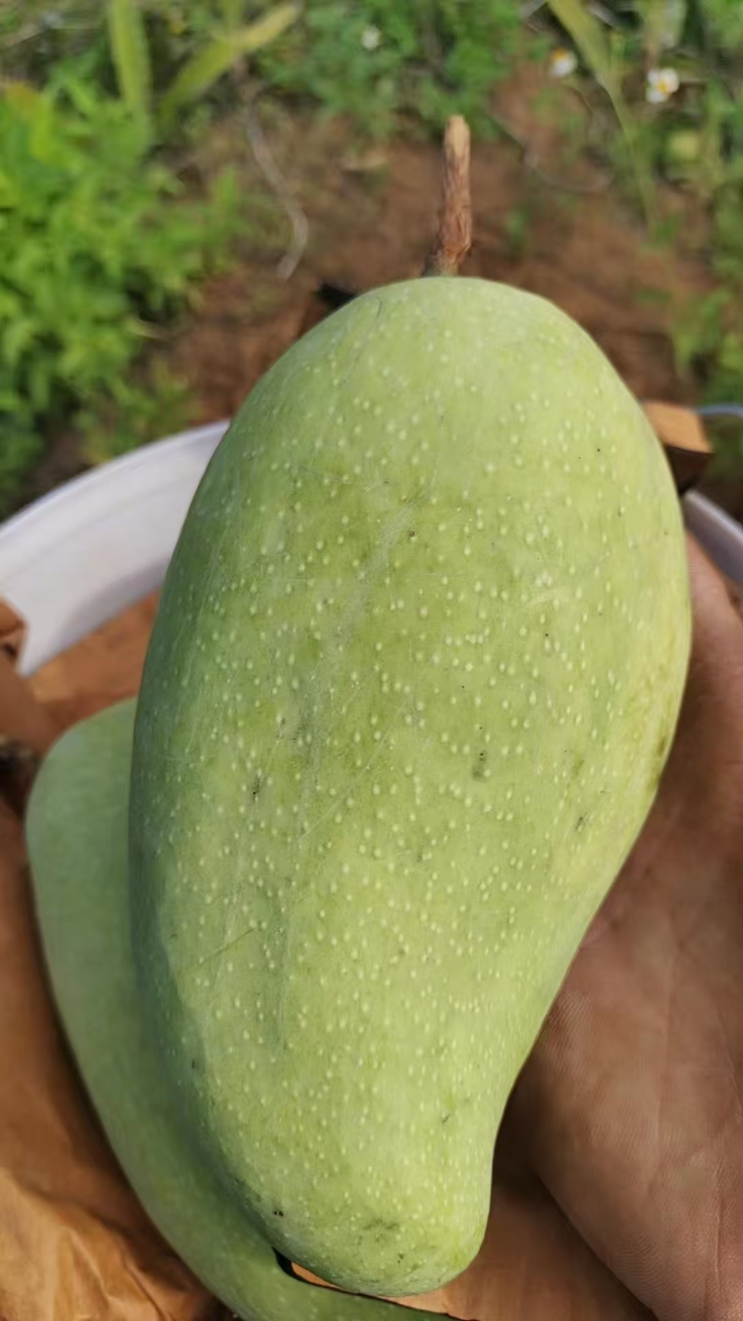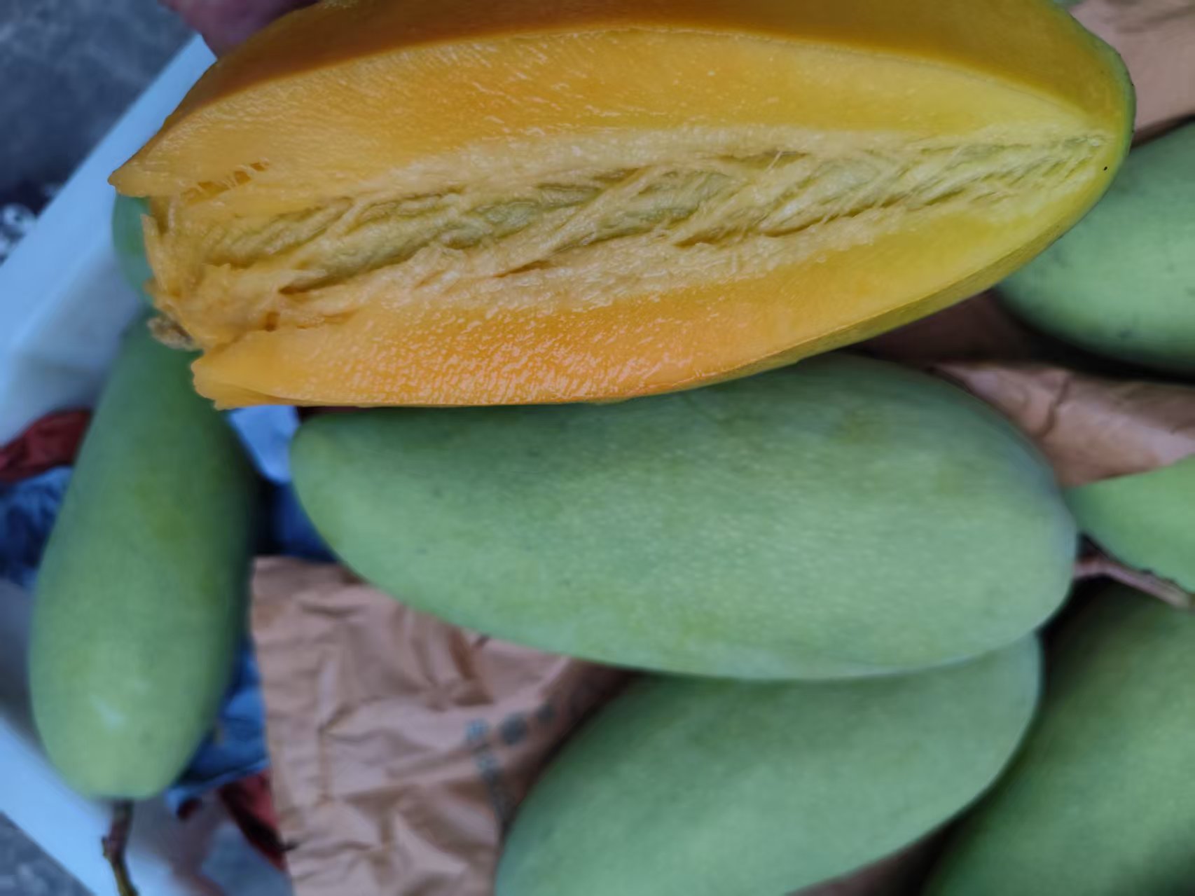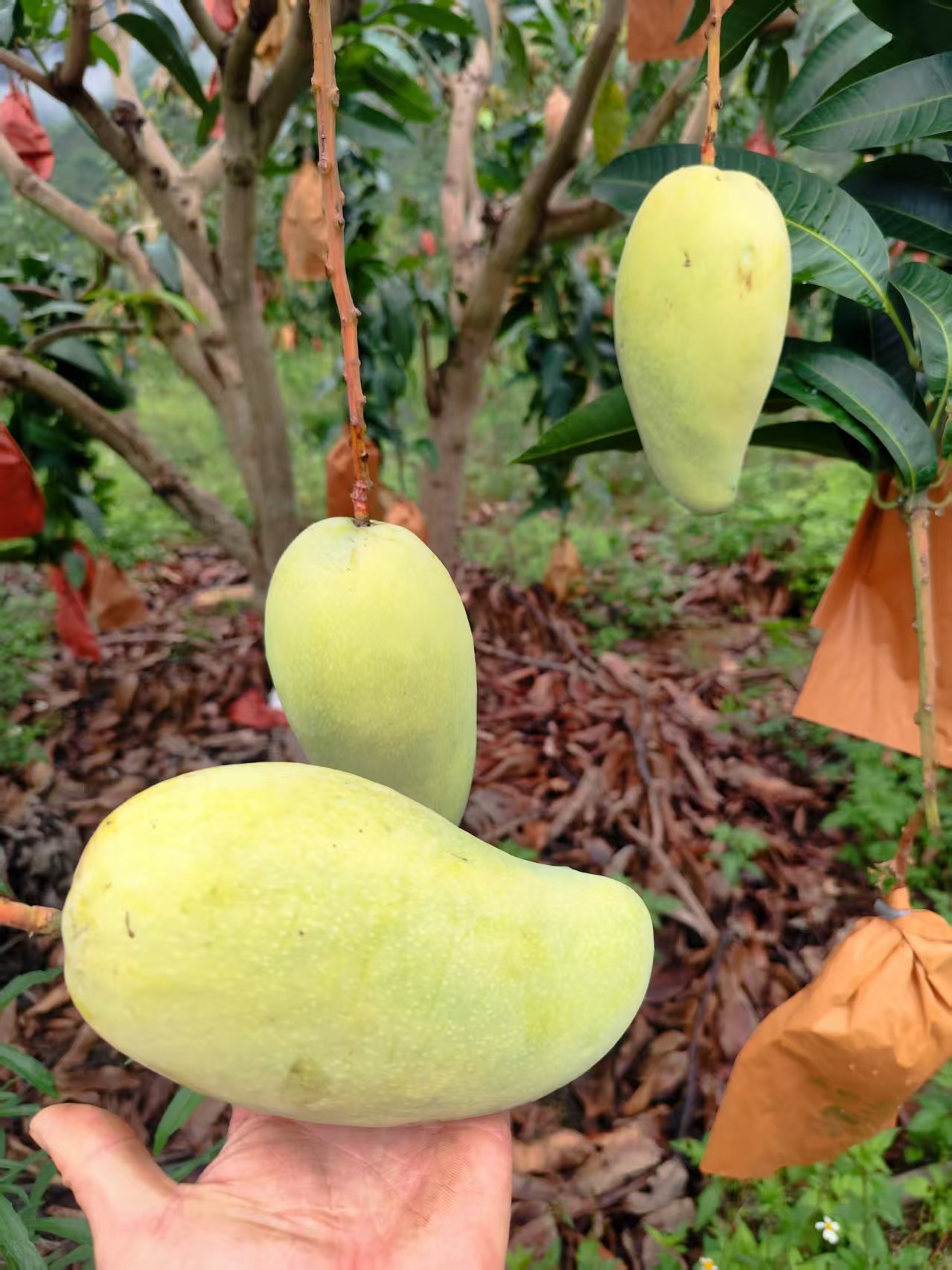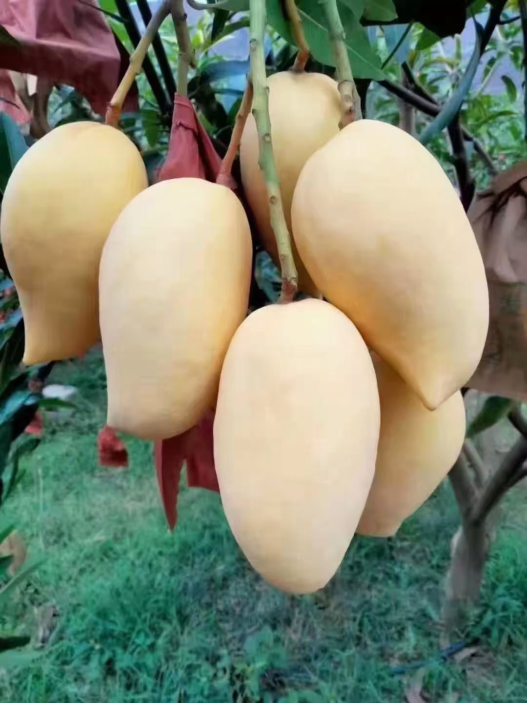 这个品种是金煌芒果个头大品种,肉厚,核薄,水份充足,味道青甜,需要套袋。一般开花时打一次药,套袋时候打一次药就可以。