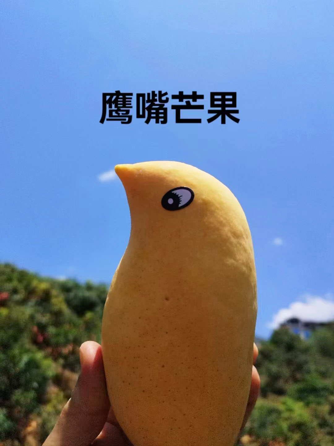 这是鹰嘴芒果,长的像鹰嘴一样的芒果 ,中个头的芒果,皮薄肉多,中核,水份充足,味道青甜,鹰嘴芒果要成熟摸着表皮软才好吃,需要套袋 ,一般开花时打一次药,套袋时候打一次药就可以。