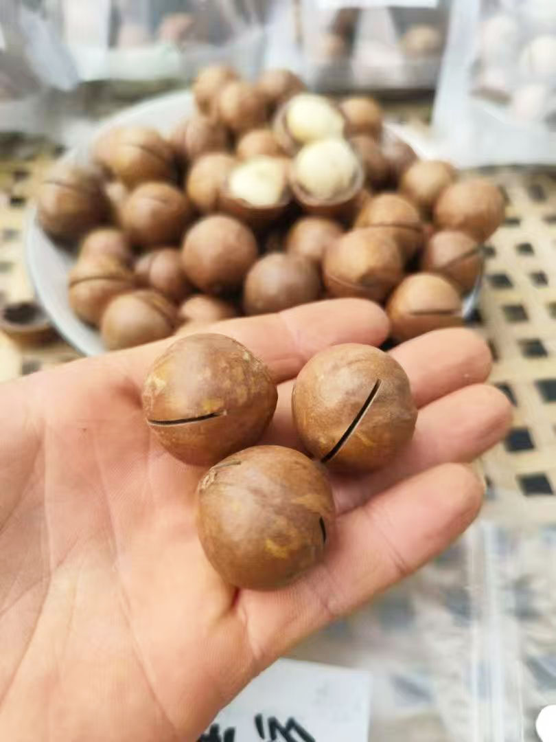 云南保山市潞江镇地处中国云南西部,位于怒江大峡谷核心地带,气候独特,是全国少有的典型的亚热带干河谷,光照充足,终年无霜,四季温润,草木葱郁,被誉为“自然博物馆”和“物种基因库”。当地白天气温30度左右,夜间气温15-20度左右,昼夜温差大,果子味道更香甜。自20世纪末引入夏威夷果以来,云南保山的种植面积迅速扩大,政府和龙头企业的支持帮助农户解决了资金和技术问题,采用科学的管理方法,确保了坚果的品质和产量,自然生长成熟,环境无污染,高山雪水灌溉,生长周期内没有使用任何激素药品,无甜蜜素,催熟剂,和膨大剂,采摘后无硫磺熏蒸,无药水浸泡,无任何科技与狠活。